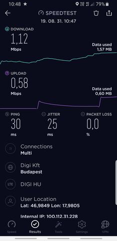 Sajnos a jelenlegi freki gyenge.. A falak rettentően felfogják. majd ha sikerül 700MHz-ből elcsípni akkor ez lehet sokkal jobb is. Egyébként a sebesség lassulást én is tapasztalom, full jel melett 1-2mbps... Ez kevés. Véleményem szerint, ezért is van még teszt időszak, erre sok user nem szabadítható rá...