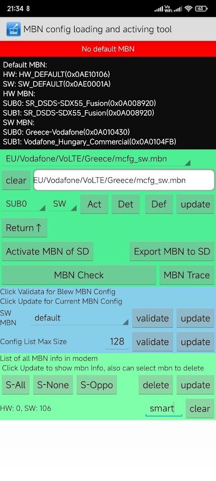 2. a modem konfigot kell beállítani: *#*#663368378#*#* az MBN configban