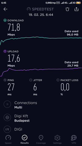 A vodával meg nem érdemes összehasonlítani, mert gyakorlatilag nincs elérhető árú korlátlan csomagjuk, ergó a 4G hálózat nincs kiterhelve. A tipikus ügyfélnek 2-5GB-os csomagja van, ami azt jelenti, hogy wifizik ahol csak tud, különben egy közepes windows update elviszi a havi adatkeretet. Így - egy 80%-ban üres hálózaton - nem nehéz az elméleti max felét kimérni.