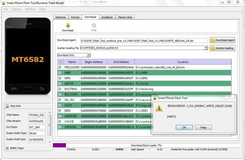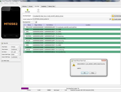 A Flash-t engedi formázni (ebből gondolom, hogy a driver és az USB kábel jó), de amikor Download-al rá akarom tölteni a ROM-ot, akkor 7%-nál lehal evvel a hibaüzenettel: "S_DA_SDMMC_WRITE_FAILED (3149)"