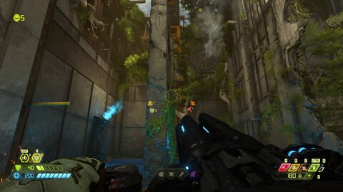 Itt ugye fel kell jutni a szélgépig és utána a shoti láncával elkapni az a zöld valamit és úgy tudunk feljutni a jobb oldalon egy magasabb pontra.