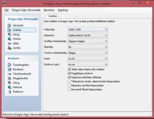 (A nyelvi file letöltése után csak felülírjuk az eredetieket, valamint az indítóképernyőn a Beállítások/Grafika/nyelv hu-hu beállításával be is fejeztük az egész műveletet.)
