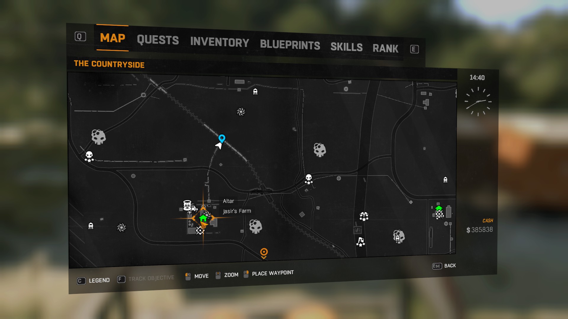Van középen jobb oldalt egy benzinkút+savehouse+quatermester kombó. A dupla alvással visszatöltődik minden apróság a piacra és vásárolhatsz megint