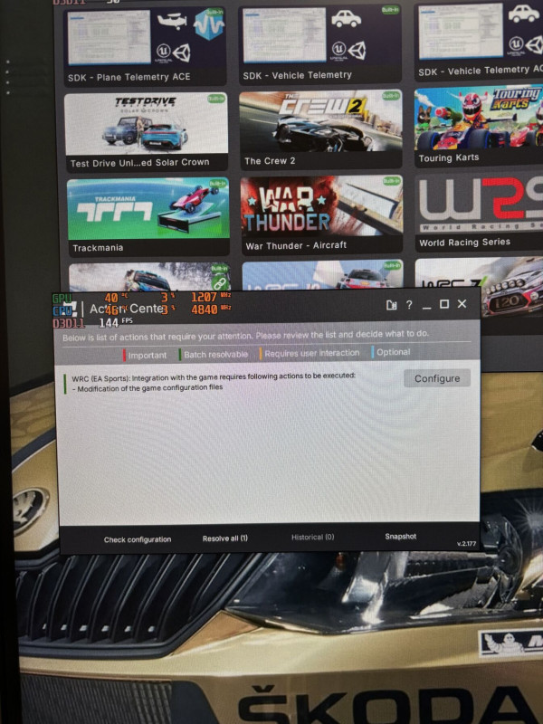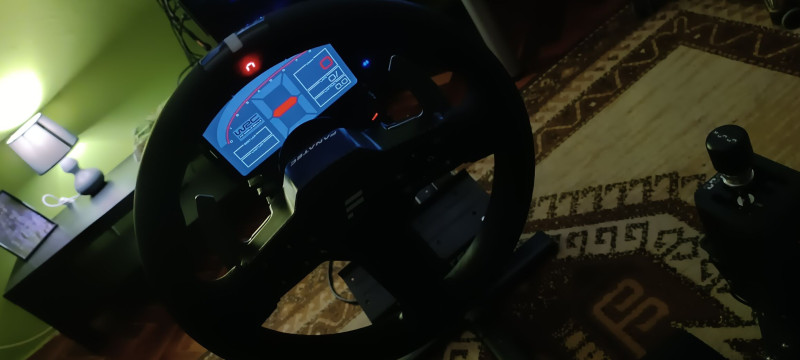 Meg a falról kihajtható 43" os 4K TV, azt előre tudom húzni egészen a bázis orráig (csak picivel magasabban van, mert a gép nem fért volna el alatta)Valamint van egy kis műszerfalam amit SIM Dashboard applikációval egy régebben lerakott telefonomról a kormány mögé vetítek telemetriából.