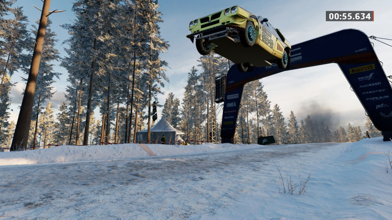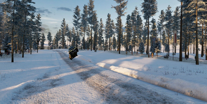 Eleinte kicsit mérges voltam, mert ilyen apró-hülye hibákat vétettem (a hátralévők közül az első stage-en a vége előtt kb. 200m-el beakadtam az útmenti hóba - bepörgés, megállás, a másodikon és a harmadikon fel-felakadtam az útszéli hóhányásokra időnként), de aztán jött egy komolyabb is, amikor simán benéztem a féktávot, és túlcsúsztam egy derékszögön, amit a játék 16 másodperc büntivel díjazott (ha az nincs, elkapom Gomez Papát a végén, így csak hátulról nézhettem a lökhárítóját a szponzormatricákkal