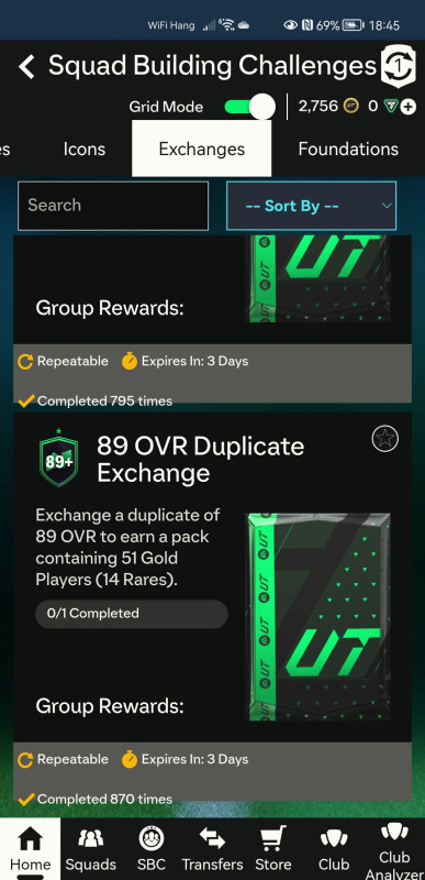De komolyan nagyon szenvedős, hetek óta csak fogynak a tots és if lapok, most tényleg konkrétan 0 van. Persze ott az if pick, de ahhoz rengeteg 81-85 közötti lap kell, és azok sincsenek már jó ideje, 1,5 hete totál üres a klubom. Picket is alig tudok rakni, mert a gold lapok sem gyűlnek be, így viszont nem gyűlnek a 82-85 körüli fodderek sem, tehát if picket sem tudok rakni, de most már igazából a napi upgradeket sem, a tegnapi 85x5-ökből is csak egyet tudtam kirakni, a többihez sem if nincs, sem 85 körüli lapok. Már egy riv reward sem szór meg alacsony ratinges gold lapokkal, igazából tippem sincs, mi lehetne innen most a "kiút" a klub feltöltéséhez, vagyis hát az egyetlen az egy drága trade nyitás lenne, amit el lehet packozni és így töltögetni a klubot, de hát drága trade nyitásom meg rég nincs