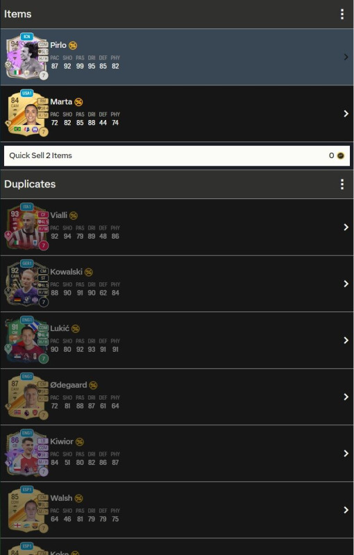 Na csak lepörgettem gyorsan a crafting sbcket. Nulla darab rózsaszín lap, még a szarokból se. TOTY CR, de hát már felette is bőven eljárt az idő. Most van 160db 77x5 packom, meg 48db 89es exchange. Semmire se tudom már elhasználni a nagy foddereket. 230db 90+ lap van a klubban is.