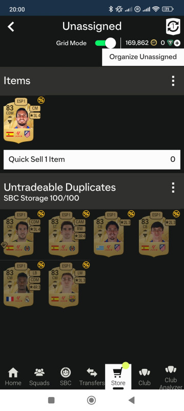 Nálam mindíg üres a klub. Most is összesen 135 playerem van, amiben benne vannak a loan kártyák idény kezdete óta. Most 3 320 coin-om van. Ha valaki feltöri az accountomat az éhenhal. Nincsen csak untrade lapom. Este mikor kirakom az upgradeeket akkor 3-4száz lap is van de mind megy bele a többi sbc-be.