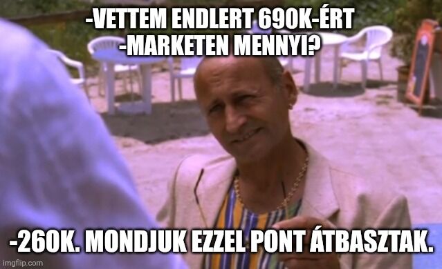Vadasztam este totyokra, 800k korul volt a legolcsobb (Endler). Vettem is egyet 690-ert. Csak epp annyira beszakadt az ara, hogy 270-ert tudtam nagy nehezen eladni