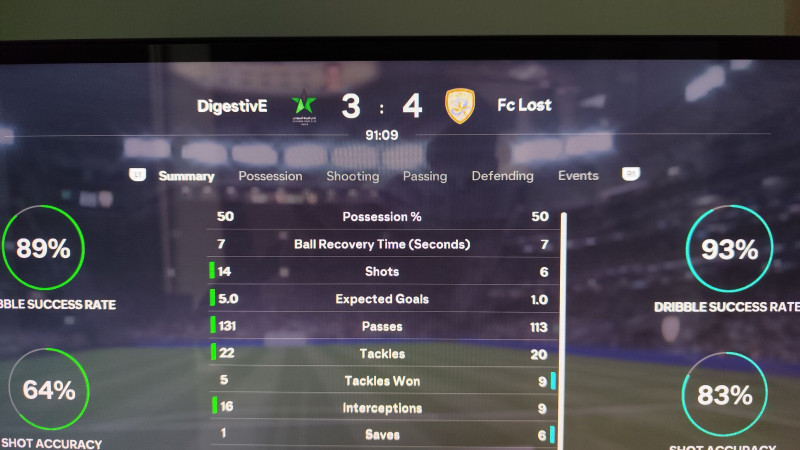 A többi gólt meg abból kapom, hogy megelőzöm az ellenfelet de a játékosaim vagy nem érzékelik a labdát és emiatt elgurul mellettük vagy a gombot nem érzékeli a rendszer amit nyomok ami miatt szimplán visszaszerelnek. Egyébként ez annyira érdekes, hogy elől is többször előfordul, hogy passzolok X játékosnak és a játék szimplán nem vált át rá az meg elengedi