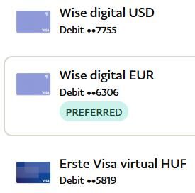 Egy másik dolog hogy több bankkártya adható hozzá.Ha van Wise vagy Revolut regisztrációd mindkét helyen lehet több digitális, virtuális kártyaszámot igényelni és ezek hozzáadhatóak a PP fiókhoz.