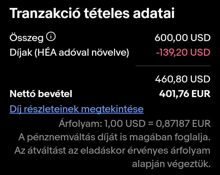 A PayPal-al az eBay felmondta a szerződést pár éve, csak fizetni lehet a PayPal-al és annak a pénzét is az eBay kezeli, de nincs külön pénzkezelési díj, a nekik fizetett (általuk levont) jutalékban minden benne van.