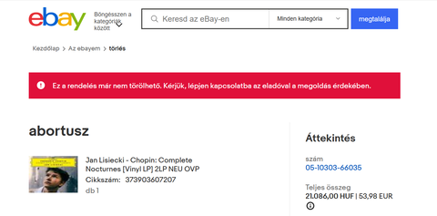 No akkor augusztus 2. van és ugyan azt a feliratot kapom ha az ask to cancel order megnyomására...a vásárlási előzményekben is ugyan erre a feliratra ugrik.