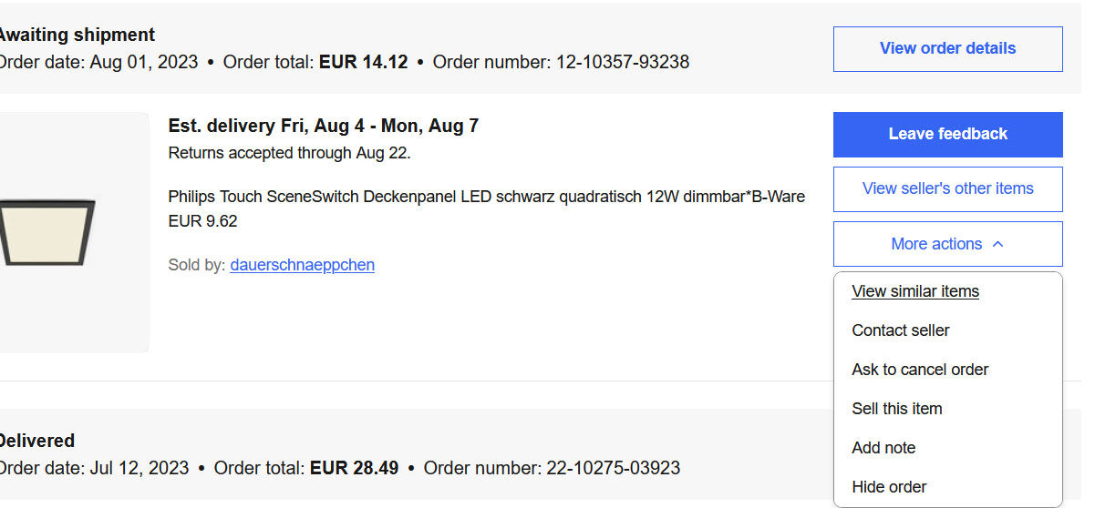 Mi a státusza? Noch nicht verschickt (Awaiting shipment) vagy valami más.