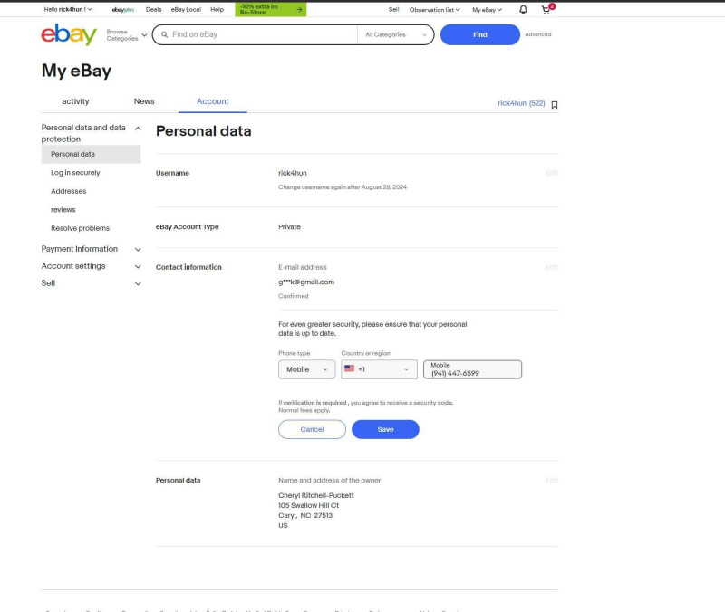 A szerződési feltételek szerint kötelességed a címadatok aktualizálása, regisztrációs cím, a feladási és a visszaküldési cím -ha el is szoktál néha adni valamit-, a számlázási cím, a szállítási címet is érdemes frissen tartani.