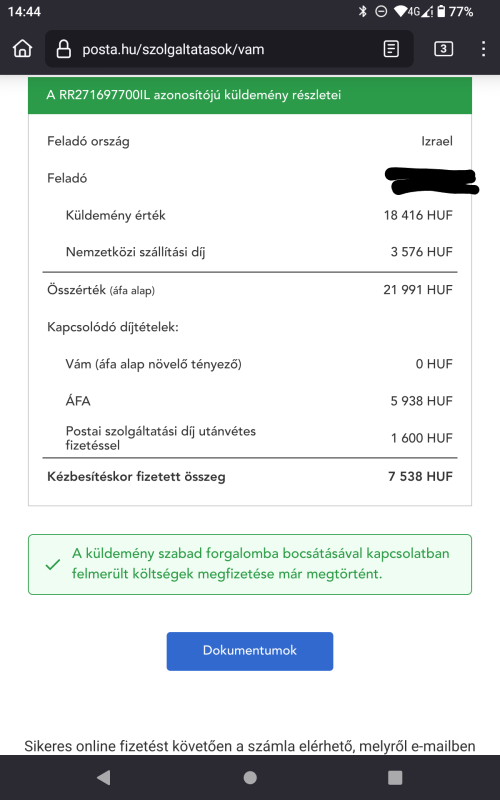 Üdv! Magyar posta (+nav) vámkezelt egy viszonylag kis értékű csomagom, annak ellenére szabtak ki rá áfát, hogy ebay-en már megfizettem a 'Héá'-t (a csomagcímkén is ott volt az IOSS).