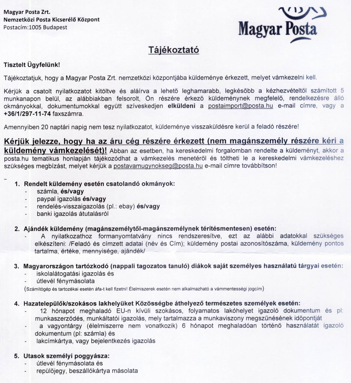 Ungarische Post hozza majd.