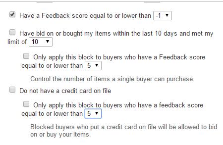 Buyer requirements jelölni ezt Block certain eBay users from buying your items
