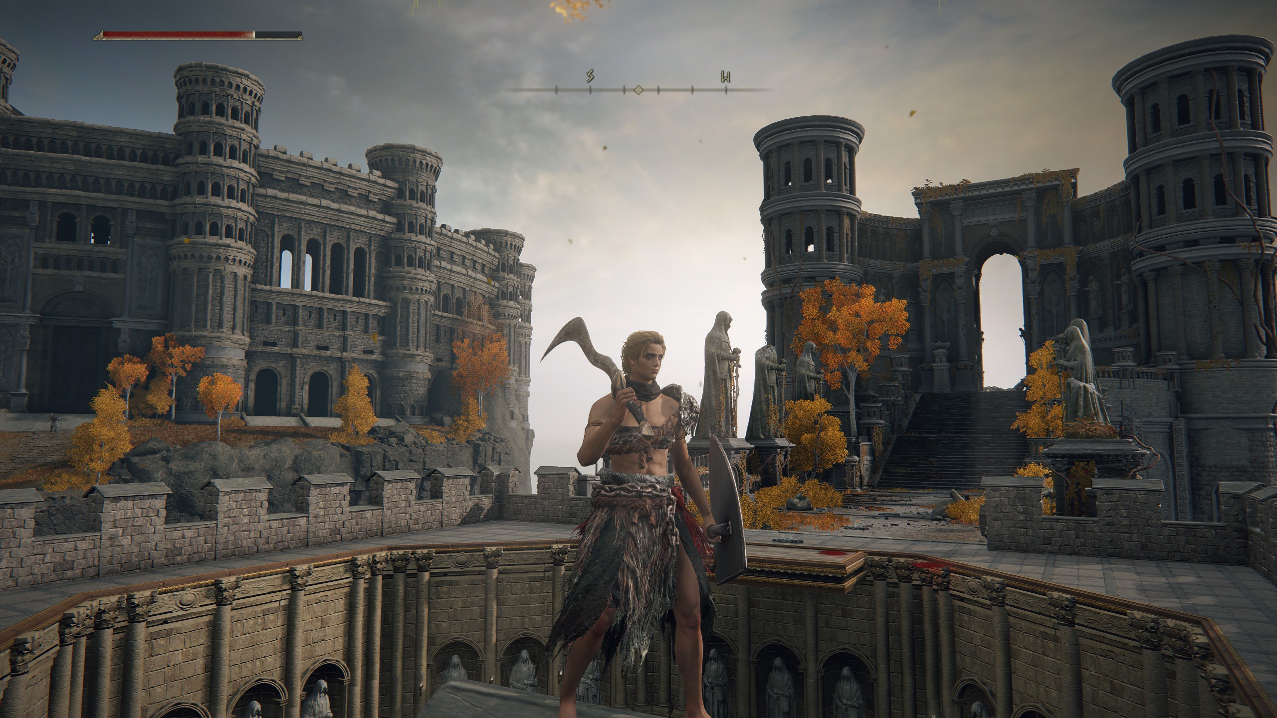Ja, eredetileg Dex-Faith buildet akartam használni, de a Fringefolk Hero's Grave rávezetett, hogy bizony, muszáj lesz Str-Dex-Faith buildet használni. Úgyhogy elkértem Eniától Godrick baltáját, és teszteltem; jó lesz ez. Csak még erősödnöm kell hozzá, mert most csak Radagon's Soreseal segítségével tudom használni, azt is csak akkor, ha két kézre fogom (szerencsére a +2 Dexterity követelmény is megvan vele). Addig is marad a Zweihander + Bloodhound's Fang.