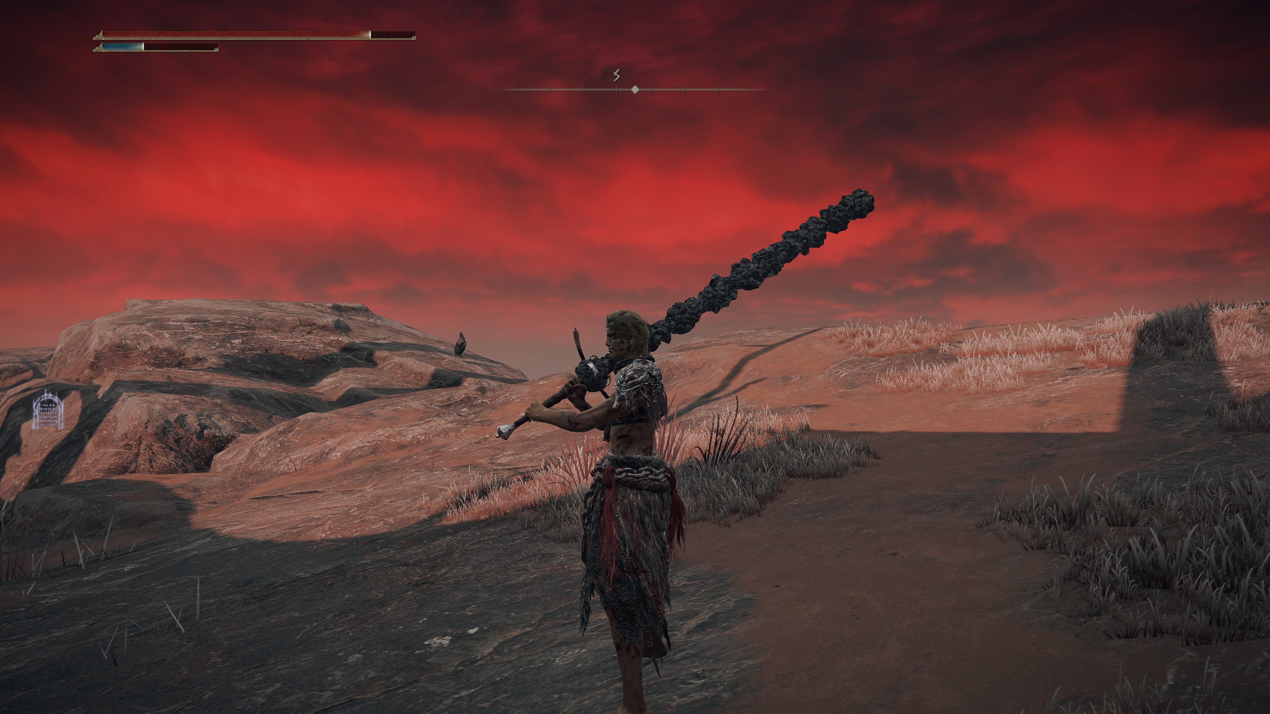 (Bár én pl. sokadik végigjátszásoknál is szeretem felfedőzen vinni a game-eket, és nem rohanok előre cuccokért. Na jó, mondjuk most viszonylag hamar el fogok menni Weeping Peninsulára a blood infusionös aow-ért, illetve az ottani kereskedőhöz a lost ashes of warért, hogy a két scimitarra hamar rá tudjam nyomni a blood infusiont a kerekasztalos kovácsnál. A kerekasztal mielőbbi eléréshez meg nyilván elszaladok Caelidre megnyitni egy ottani grace-t. De ezt sem sietem el, nem top prioritás, csak fogalmazzunk úgy, hogy amikor amúgy is Weepingre mennék, akkor előreveszem ezeket a dolgokat.)Különben a Bloodhound's Fang is beleillik a sorba. (Tudom, hogy tudod, ezerszer jobban is, mint én, de nekem mindig az a fegyver jut eszembe, mint olyan darab, ami a játék végéig rohadt erős marad, egyenletesen, és gyakorlatilag kezdőterületen megszerezhető. Úgyhogy muszáj volt megemlítenem még ide.