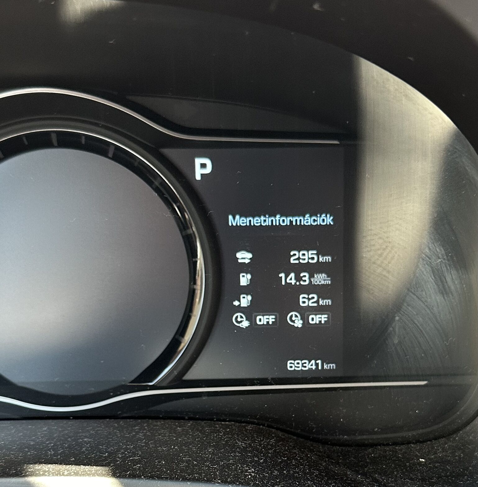 1.: Mutatja mennyi energiát használt el az autó új kora óta ténylegesen... kW-ban.