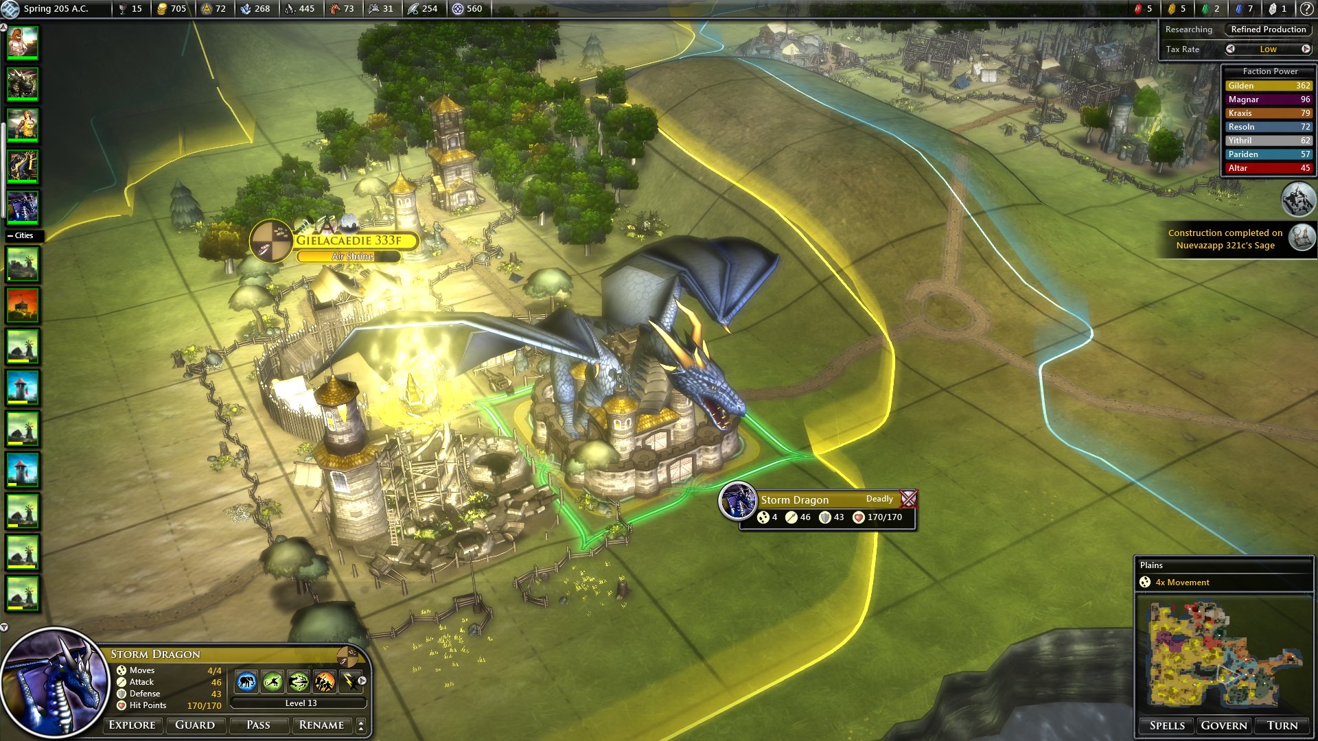 Elmásztam a térkép túlsó felébe Annával, ránéztem Paridenre... hát érdekes lesz. Viszonylag elszigetelt, Magnarral van csak háborúban, az odavezető utat szép sereggel védi (mellette izmos dungeon, tehát nem egyszerű odajutni), és... hát tudja mit akar. A városai csak a Spell of Mastery-re gyártanak... lehet, hogy kénytelen leszek megtámadni. El is küldött a városai mellől, de már késő, tudom, amit tudok