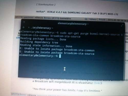 és végül egy újraindítás. Ezek után elvileg működnie kell a wifinek. (Erről a Broadcom wifi megoldásról itt is olvashatsz: [link])