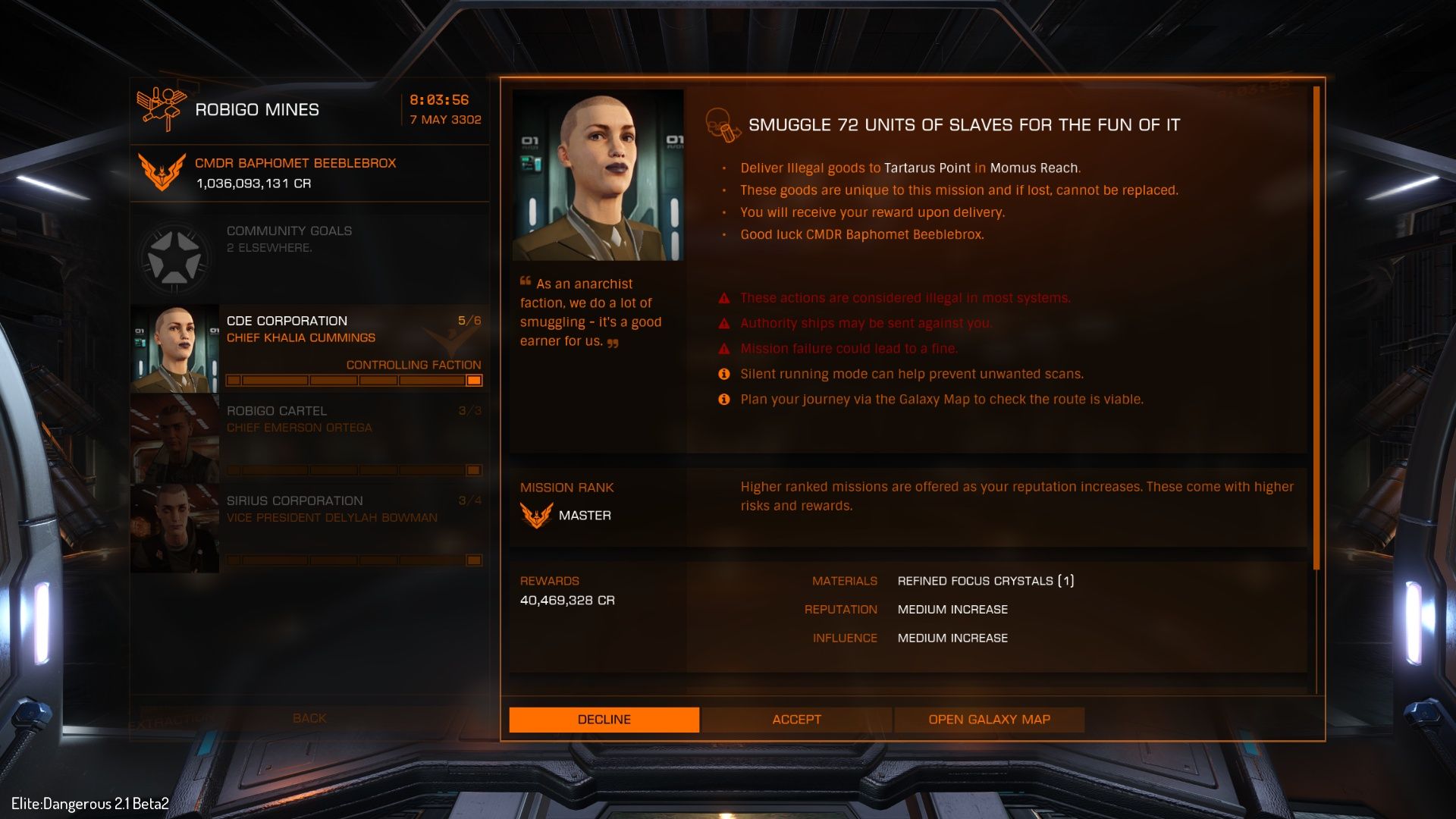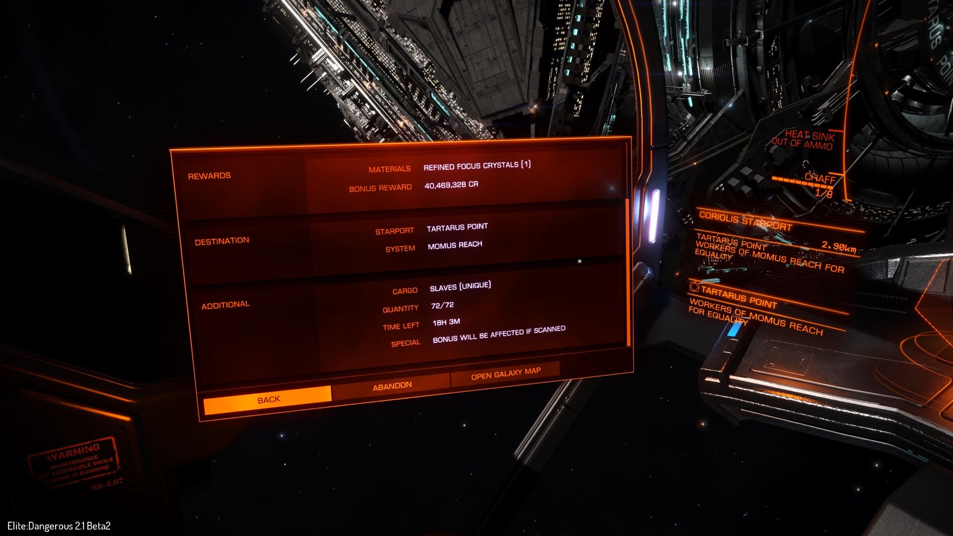 Rendőr nem zaklatott útközben, de elite kalózok többször rámugrottak SC-ben. A jó öreg csempész Asp konfiguráció tette a dolgát, simán kereket tudtam oldani. Nem igazán akartak szkennelni a célállomásnál sem, többször is belandoltam SR-rel és anélkül is.