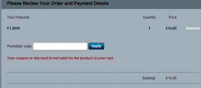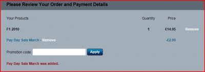 UK oldalon a Pollen által megadott itspayday kódot kell használni és el is fogadja nálam is az F1 2010-nél (is)!