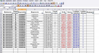 van 1 excelem, 2 munkalap van benne. Az első munkalapon van egy olyan oszlop is, hogy rajzszám. Ezek ömlesztve szerepelnek, kb. 10-es 20-as csoportokban (ennyi rajzszám van 1 megrendelésen). Így néz ki 1 sor pl.:Munkaszám/Pozíció / Anyagszám / Megrendelés / Megnevezés / Rajszám / Darabszám