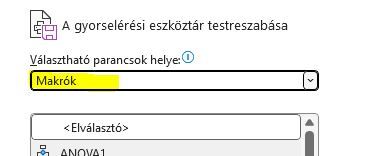 Ezután átváltasz a Munkalap ablakra (maradsz a Personal munkafüzetben!) - majd Fájl - Beállítások - Menüszalag testreszabása - A választható parancsok helye lenyílóban kiválasztod a Makrók tételt. Itt megjelennek az egyéni makrók is. Kiválasztod a szükségese(ke)t és felveszed a saját menüszalagodra.