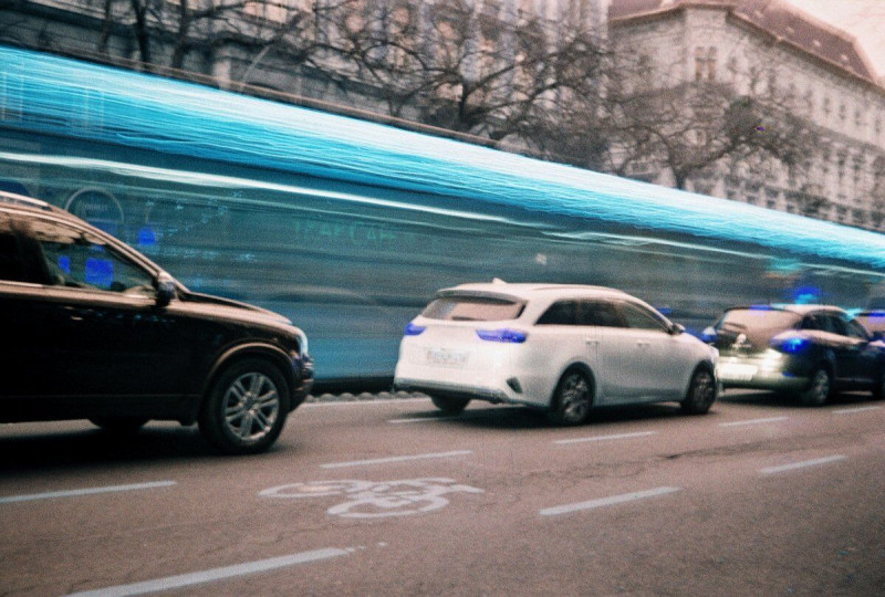 Az úttestet a reggeli sózástól, és forgalomtól megolvadt fekete latyak, és a friss porhó keveréke festette "tejeskávé" színűre. Tapadás szempontjából az egyik legroszabb út felület...