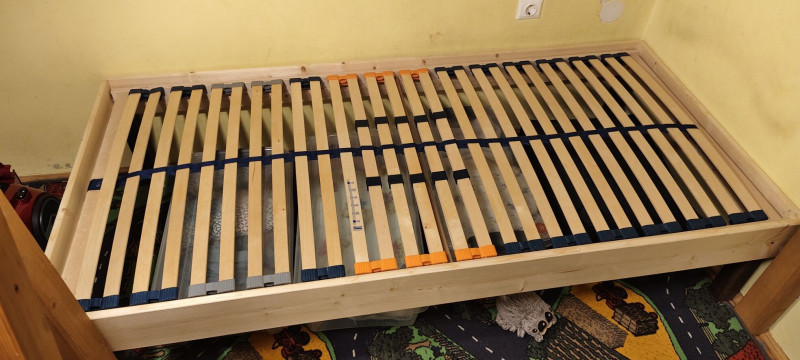 Karácsony előtt revampolom a lakást. Nagyfiam kinőtte a 160*80(?as) ágyát. Mivel a két kisebb galérián alszik még, ezért praktikusan a 190*90es fért el a helyére. Hétfőn kezdtem, minden kapkodás nélkül ma kész lett. És a helyére tetriszeztük az asszonnyal. Tetőléc, gyalult deszka, elfekvő lábnak való vastagabb 5*5 stafniból.
