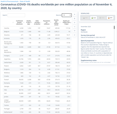 Mert te az elmult 7 napra szurtel a fenti kep meg a November otodikei allapotot mutatta. De hatodikan is 100+ halottunk van, szoval a te szuresed is romlani fog. Nem vagyunk vilagelsok, a cseheknel tobben halnak meg, de ezt a kepet en is csak igy talaltam. Azoknal az orszagoknal, aznap rosszabbul altunk.