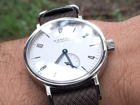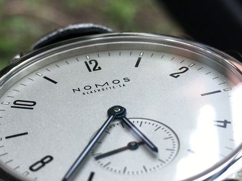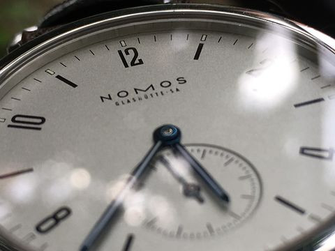 A kézihúzós Nomos Alpha kaliber 21600-as lengéssel bír, teljesen jól írta.
