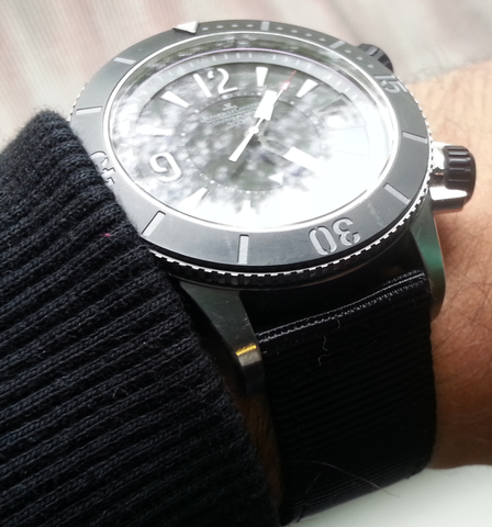 Igen, ez a szíj is kb annyiba került. Azt hiszem Trumirr, vagy valami hasonló a márkája, de majd megnézem otthon. Véletlenül futottam bele idehaza, sajnos 18mm-es méretben ritkán lehet találni jó szövet szíjat. Ez eddig elég jó minőségnek tűnik, de beszerzek majd hozzá egy gyári szövetet is előbb-utóbb a Nomos-tól.