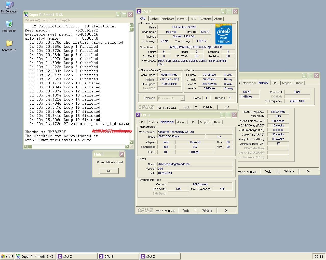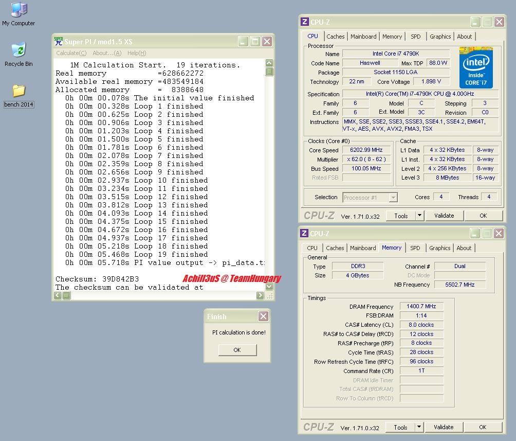 szombaton megtartottam a ram nitrós session-ömet, amelyet ezuttal egy uj cpu-val küldtem meg, mivel lcc-re szerettem volna 32M-et csinálni fix 5Ghz cpu/5ghz uncore mellett, ugy voltam vele miért rakjam be megint a pentiumot az tudom mit megy, és beáldoztam egy nagyobb pénzmagot egy bontatlan 4790K-ra, amit fpo alapján választottam, de subzero eredménye senkinek nem volt vele, viszont ph-n elég sok embernek volt hasonló L420B batch ami elég jól ment, max eladom a léghütéses brigádnak ha subzero sucker. szóval reményekkel teli álltam neki a session-nek, 3 óra volt kiszigetelni a rendszert, ezúton is köszönöm subaruwrc kollégának aki kölcsönadta az SF3D rampotot, de sajnos a végeredményben csalódnom kellett. a cél a 2600+ 6-10-6-28 ramórajel lett volna és ott 32M-et futtatni. de hiába hűtöttem le a ramokat, nem ment még a cl7 sem, bármilyen ramprofillal probalkoztam, kaptam dinos22-től is psc-hez való profilt, beállitásokat, mind sorra kudarcot vallottak. egyszerüen nem találtam meg a kulcsot a cl8 időzités alá viteléhez a memóriáknak. viszont cl8-on megindultak egész jól, 2800 8-12-8-28-on sikerült 32M-et futtatnom minden tweak nélkül 6:04 lett az idő le se mentettem, 6 perc alá menetel lett volna a cél, ami a tweakekkel is max 6:01 körülre ment volna le. talán még lesz kedvem és ujrapróbálom egyszer, de ezekkel a ramokkal nem valoszinü, ugyanis igy is 3 óra után fel kellett adnom, kezdett a lap eléggé lefagyni, és mivel láttam, hogy ugy sem megy, nem akartam megölni a rendszert, de mondom előtte azért még rápróbálok gyorsan mit is tud az új cpu. és mivel eddig -50-en tartottam lehütöttem, első pozitiv tapasztalat cb/cbb is -130C-on. nocsak, akkor nézzük mit is ment: