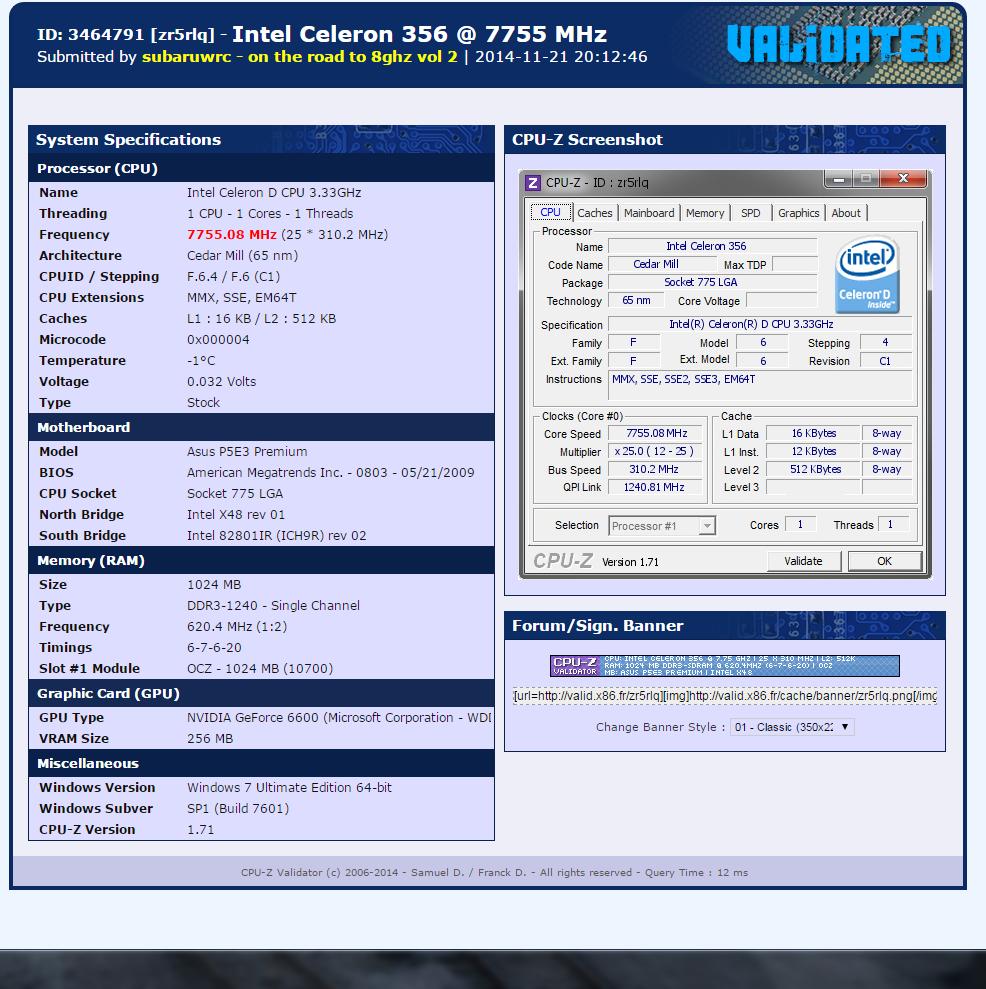 Celeron D 356 3618A820 2.1v F1 Gemini -188°C