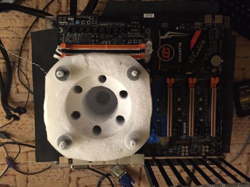 szigeteléskor mindenhova tömj minnél több rétegű szilviát. a képen amit feltöltöttél látszik, hogy a borda lefagy és tovább megy a hideg a kondikra és a nyákra is. tömj papírt a kondik és a borda közé mindig. de ha ilyen kis terhelést és feszt adsz neki akár le is veheted a full bordát, el kell birnia a vrmnek nélküle a terhelést ln2 mellet. plusz ventit is tennék oda ami fujatja és nem engedi ennyire lefagyni.