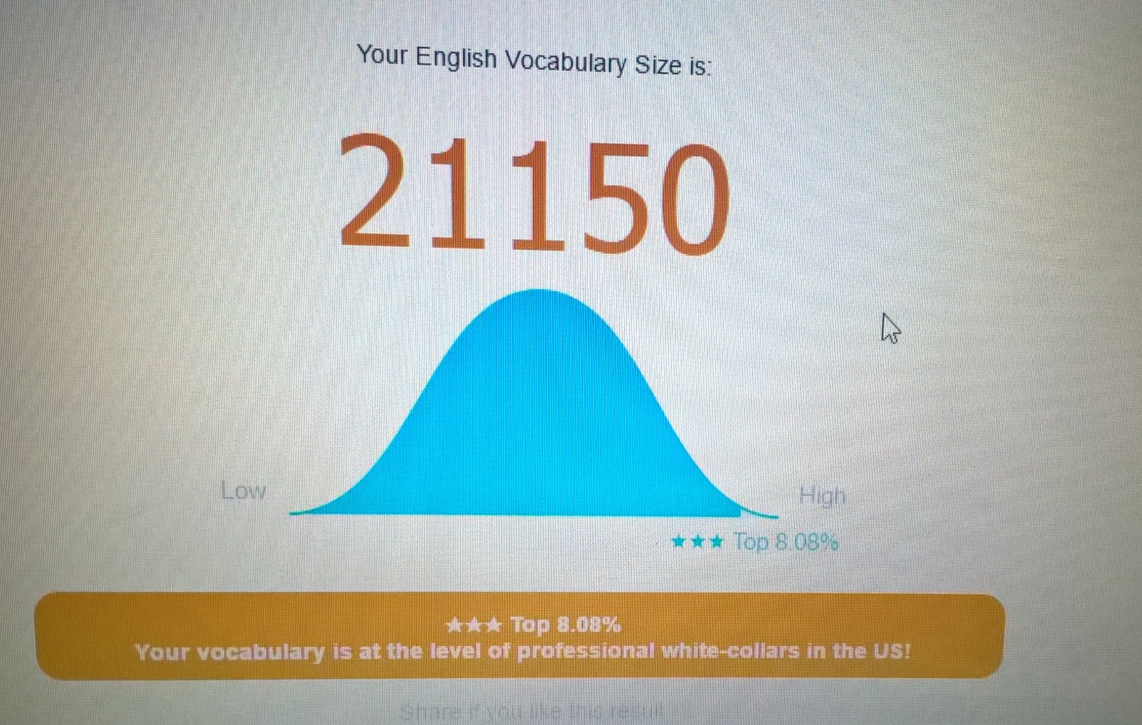Your vocabulary size is like that of a 8-year-old child in the US!