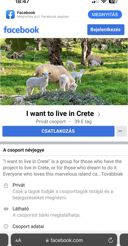 Lenne egy olyan problémám, hogy több csoport is van, amit a rendes profilommal nem látok. Mutatok egy példát, hogy mire gondolok: egyik ismerősöm Krétán él, ő küldte el nekem a csoport linkjét. Ha úgy nyitom meg gépen, telefonon, bármin ahol be vagyok jelentkezve, ez fogad: