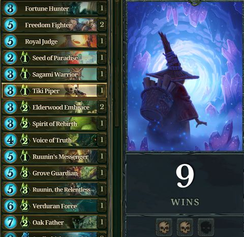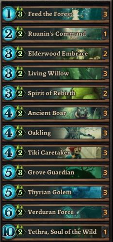 Majdnem ugyanez volt a saját is csak a neutral charger helyett az 5-6 zöld taunt volt bent meg seedlingek voltak a bone collectorok helyett. De mostmár kezdem érezni miért rohadt jó ebbe a hastes neutral, earlyremovalnak is nagyon jó tud lenni, ha meg kap egy oakling buffot, nagyon bitang az 5 manáért 8-8 haste.