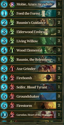 Amikkel én most játszok, azok:greedy B ramp deck(+1 Dream Reaver nem látszik a végén), ez most a kedvencem, rush ellen nagyon észnél kell lenni, de az összes controlt és midranget elveri, egyedül a nagyon highrollos bargain veri el, pl. ha kijön neki két 0manás aoe vagy hasonló. Simán tud tempóból is nyerni, de az ultimate kombó az ellen kútja melletti földről indított két fugu + dream reaver otk.