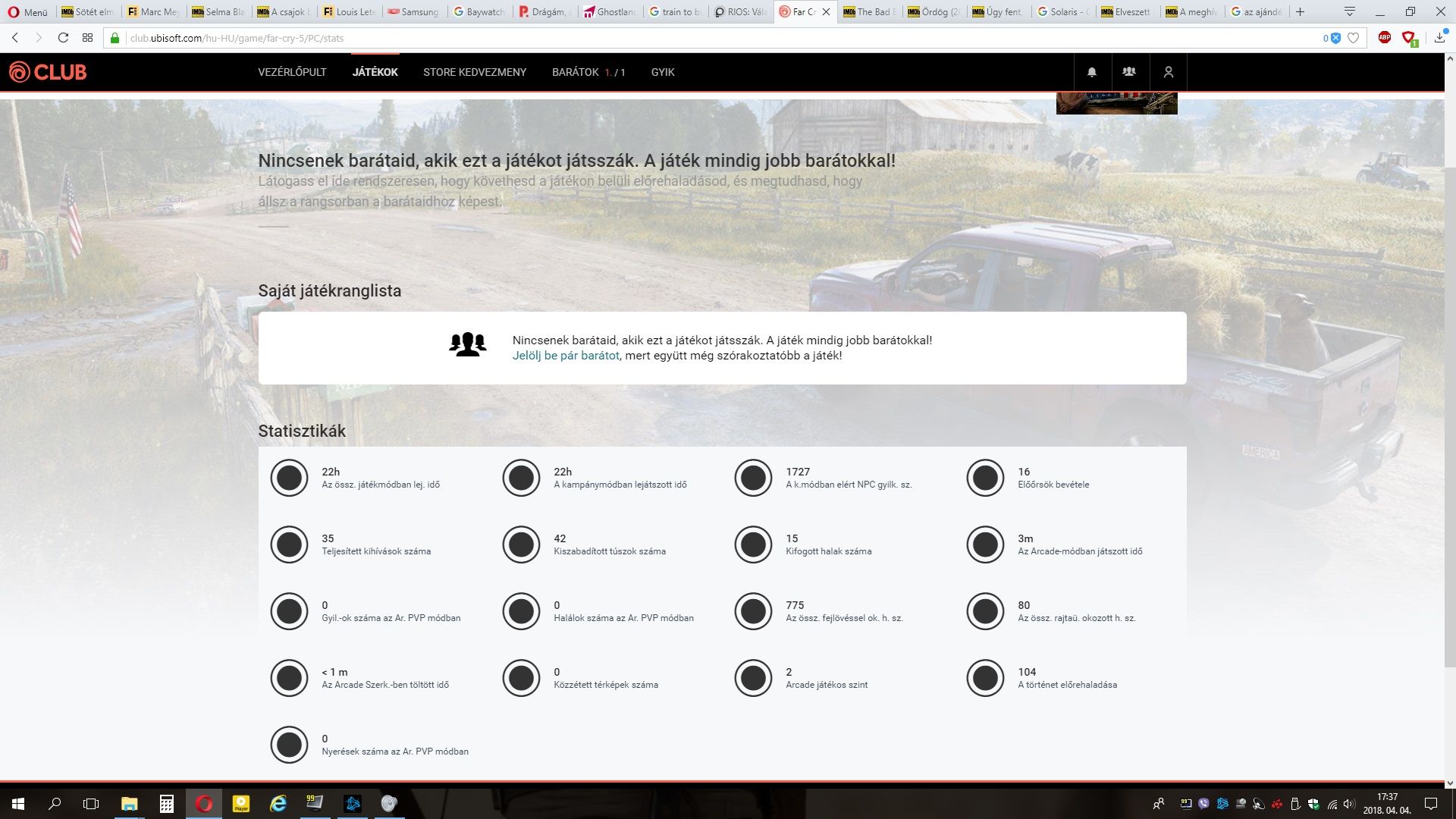 PS4-es topikban már megkérdeztem, de itt is teszek egy próbát. Far Cry 5-ben (PS4) hamarosan meg lesz az összes trophy, de van egy, amit csak ismerőssel lehet teljesíteni. Konkrétan, hogy csináljak meg 3 küldetést egy baráttal. Ismeretségi körömben, konzolos sincs nagyon így, ehhez keresnék itt embert.