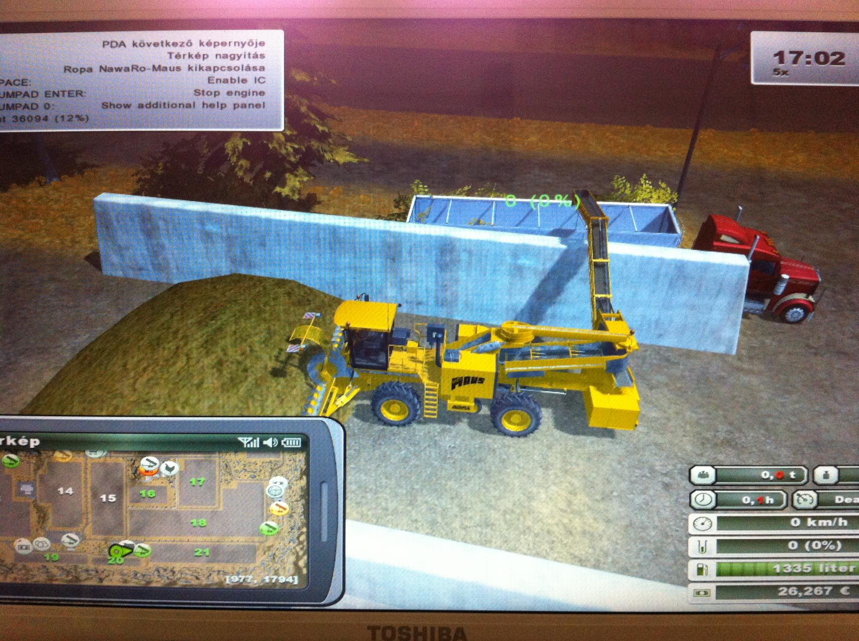 Igazából nem kell hozzá atomfizikusnak lenni, elég egyszerű a képlet. A learaott földön ott marad a szalma. Mivel még nincs pénzed, ezért van kultivátorod, a kék színű az alapból asszem. Utána kötöd a trakinak, és újra megműveled a talajt. Ültethetsz bele búzát, árpát, repcét. Ezek az alap dolgok, ezeket tudod ültetni az alap már meglévő ültetővel is. O betűvel tudsz változtatni magot. A vetőt előbb fel kell tölteni ott, ahol zsákokat látsz egymásra rakva. Nagy segítség lehet még az is, hogy a zöld tartályokban van valamennyi cucc mindegyik fajtából. Csak alá álsz egy pótkocsis trakival, belehullik, és mindegyiket viszed, ahol a legdrágább. Az árak változnak, lesz majd néha olyan is, hogy hirtelen nagy árat kínálnak egy termékért, kb 12 órán keresztül, de valamelyiknél csak 6. Ekkor elég jó magas az ár, érdemes mindegyik fajtából beraktározni és amikor ez van, akkor gyorsan eladni. Vannak küldetések is, amiket érdemes csinálni, de mindegyikhez raklapvillával ellátott traki kell, ami még nem olcsó az elején, így érdemes arra is gyűjtögetni. A másik az meg kaszálás, az van már 3 ezerért ilyen kis fűnyíró traktor, amire fel lehet ülni. Jó az, csak elég lassú. A küldetésekre idő van, ha gyorsabban csinálod meg kapsz bónusz pénzt is. Huh, lássuk csak mi van még. Sajnos az elején a kevés pénz miatt tényleg csak azt tudod csinálni, hogy eladod a zöld tárolókban lévő cuccot és ültetsz, aratsz és ezt még sokszor