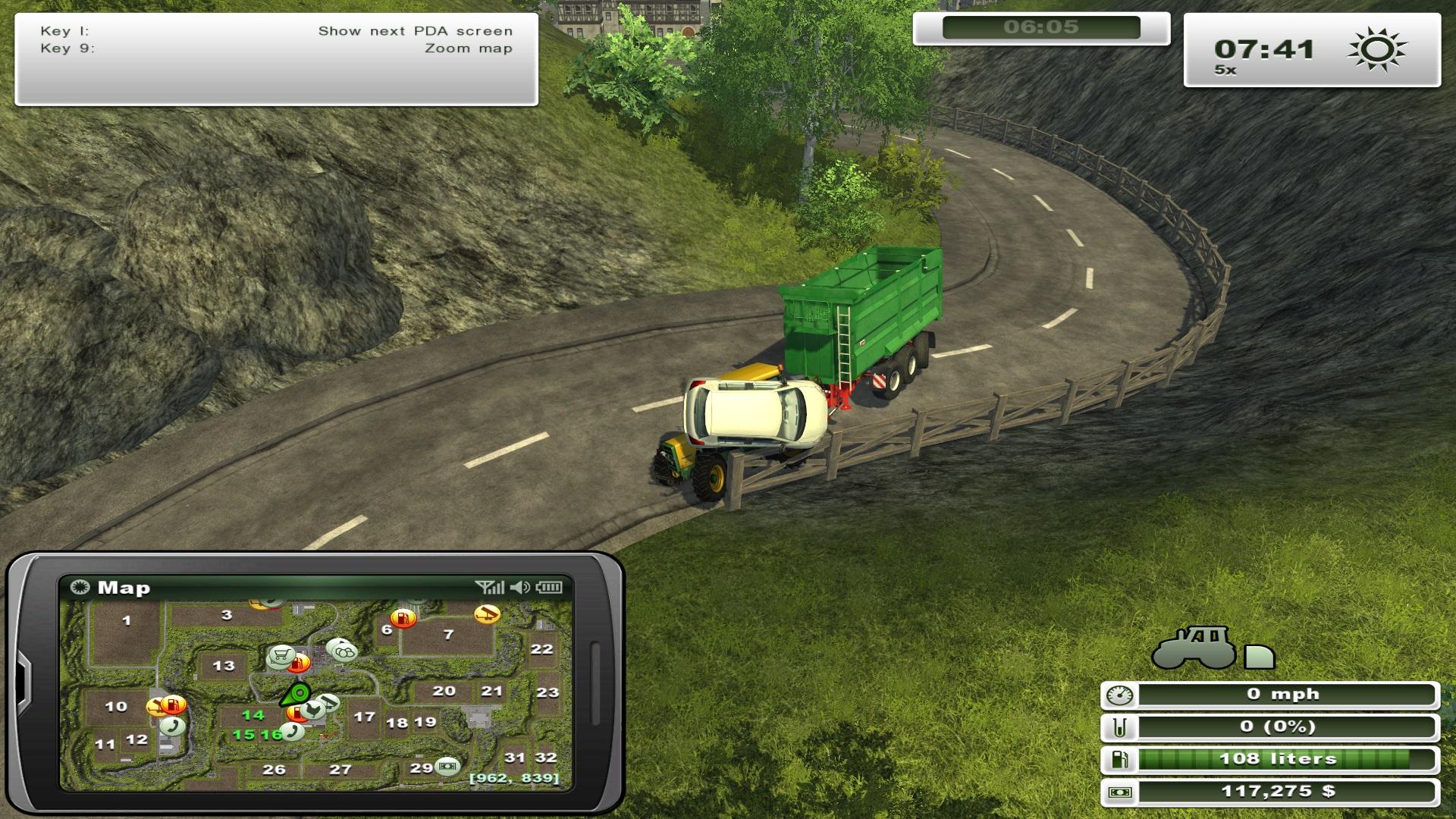 Nem csak az autóforgalomról van szó. Az egyik legrosszabb az amikor csinálom a küldetéseket, hogy az elején legyen pénzem és megpróbálok rövidíteni, és annyira bugos a raklapvilla, hogy az valami eszméletlen. Elkezd remegni maga a villa a traktoron és szétrázza az egész gépet, leesik a raklap a villáról, stb, stb. Ha nem lenne ilyen addiktív a játék már rég letöröltem volna a 'csába