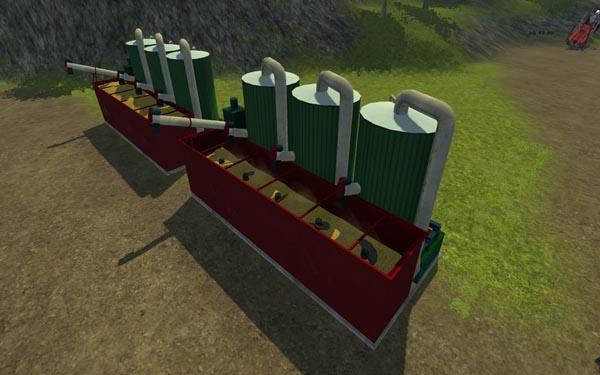 Szalmát (bálázottat, vagy felszedőkocsiból), füvet (felszedőkocsiból), vagy szénát (bálából), illetve takarmányt kell betölteni. Az üzem bemeneti tárolója háromszor 50000 liter, a kimenetei tartály 100000 literes. Az aktuális állapotot az üzem végén lévő szürke színű táblánál tudod megsasolni. Ha már látod, hogy van kevert táp a tartályban, akkor aláállhatsz az ürítőcsőnek egy arra alkalmas pótkocsival és máris viheted az etetőbe a fincsi tápot.