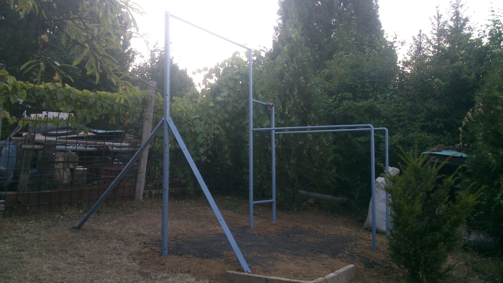 Viccet félretéve nem akartam lebetonozni a fát, így talpakon áll és van egy minimális "játék" amikor felkapaszkodok, de még egy merevítés hiányzik belőle.