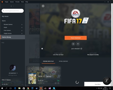 Originben rámegyek a "Browse Game", ott kiválasztom a Fifa 17-et, de csak tölt az Origin, nem hozza be a játékot. Hogyan tudom letölteni a demot?