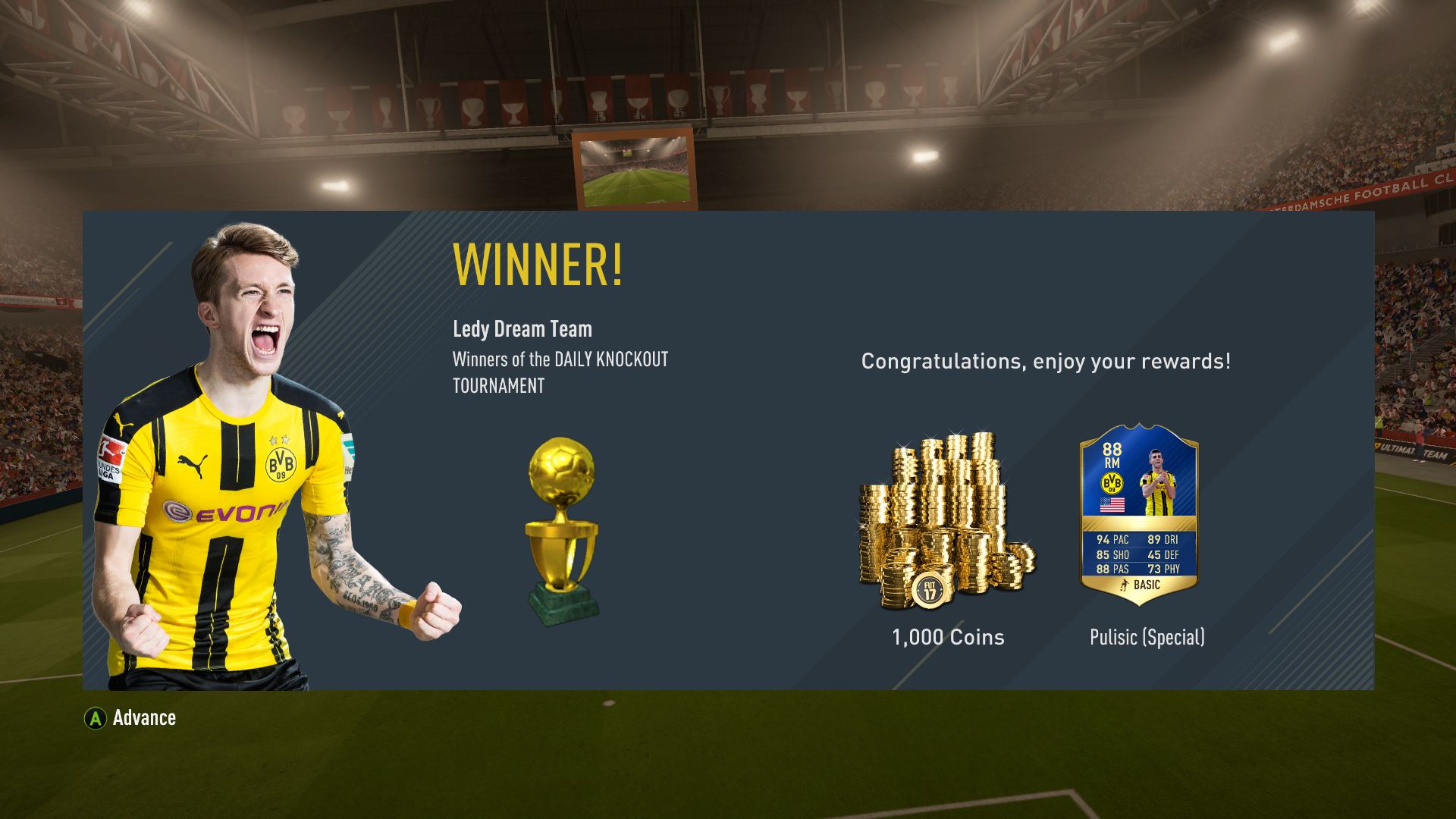 Aztán csapatot váltottam, OTW Embolo, IF Pulisic, és eme Isten vezérletével sikerült hozni az összes meccset, amiből a döntő volt a legkönnyebb, sima 5:1. Welcome to the club!